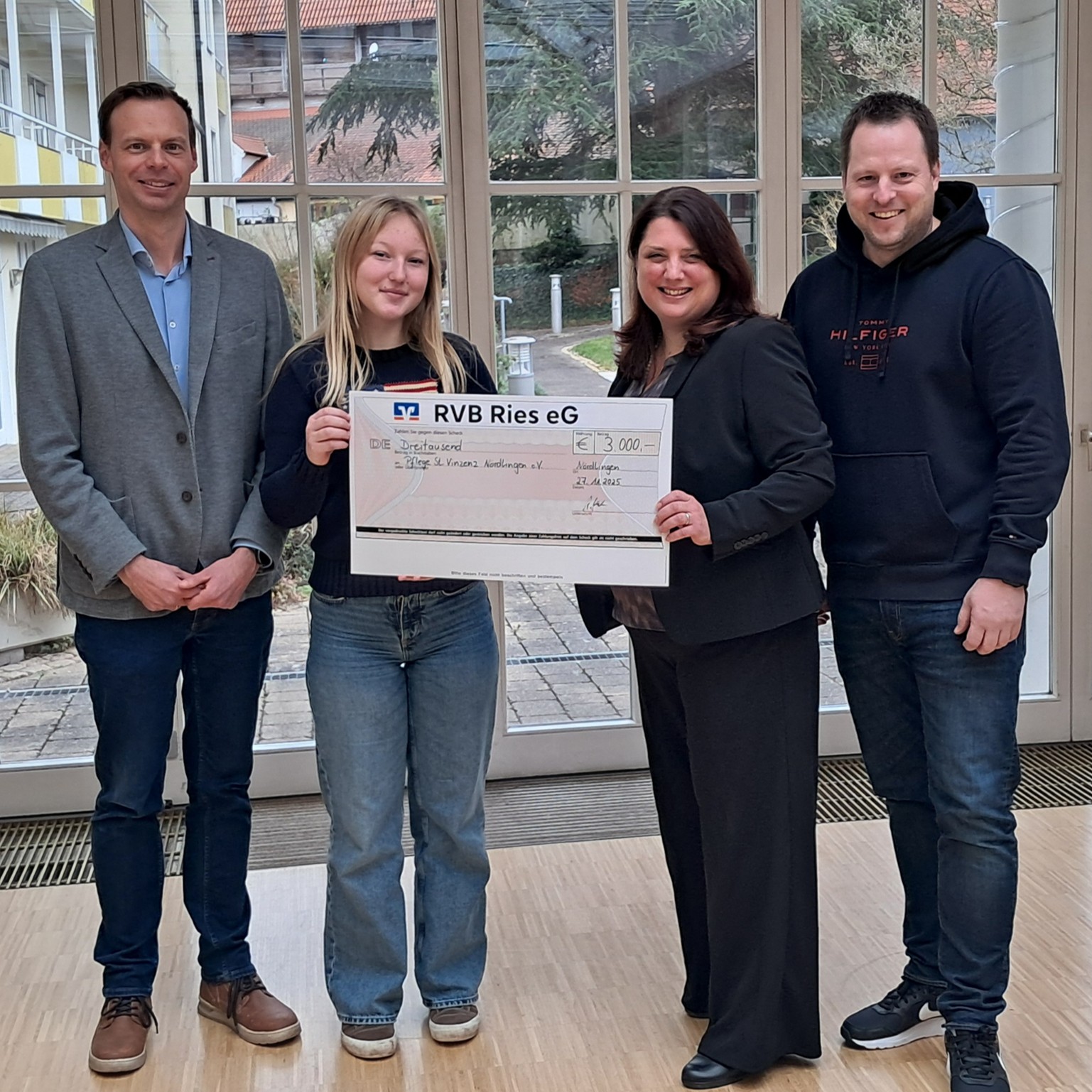 3.000,00 € konnten nun an die Seniorenwohnanlage St. Vinzenz überreicht werden, die von diesem Geld Kuscheldecken für die Bewohner anschaffen werden. Die restlichen Summe wird aufgrund der stark gestiegenen Kosten für die nächsten Schulfahrten, vor allem für die Romfahrt der gesamten Schule im Jahr 2027, verwendet werden.