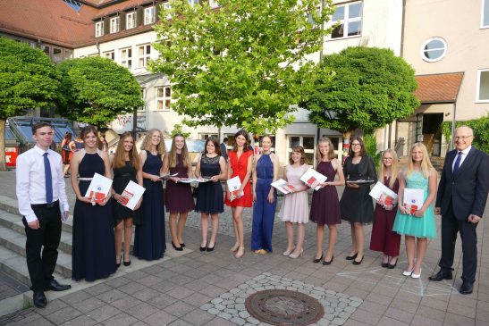 20 Absolventinnen und Absolventen von insgesamt 84 haben eine 1 vor dem Komma. Die Schulbesten sind Zuzanna Kurzawa (1,27), Maurice Möhle (1,40), Jule Dörner (1,40), Lea Schmied (1,45), Sarah Prügel (1,45) und Muhammed Dibrani (1,50). Sie alle wurden vom Freundeskreis der Realschule und vom Elternbeirat ausgezeichnet. Für besondere Leistungen in den MINT-Fächern (Mathe, Informatik und Naturwissenschaften) erhielt Muhammed Dibrani verliehen vom Geschäftsführer Mathias Thienel der Firma Destilla einen Preis. Der Sozialpreis des Elternbeirats für besonderes außerschulisches Engagement ging an Marie Steinmeyer (10c). Mit einem Stehempfang im Anschluss an die feierliche Zeugnisverleihung ging der Abend in der Aula der Realschule zu Ende.