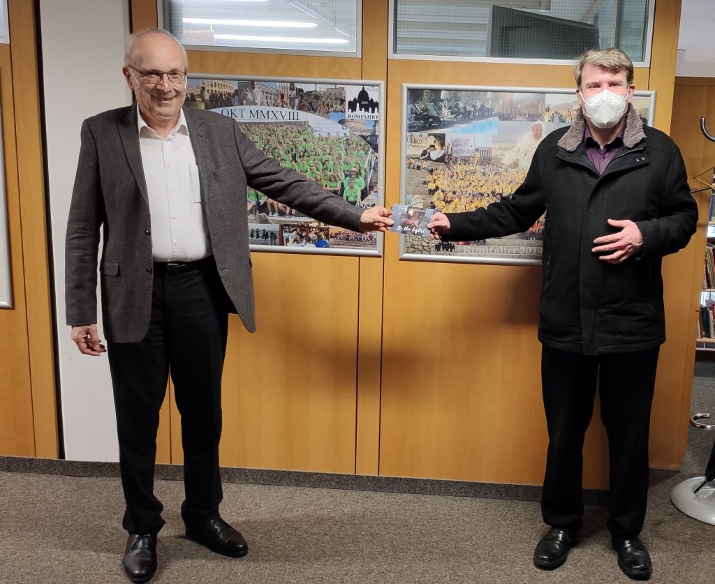Vor den Osterferien fanden die mit Spannung erwarteten Aufführungen des Musicals „Leben im All“ in unserer Turnhalle statt. Weihbischof Wörner besuchte eine der Abendvorstellungen und war genauso beeindruckt wie das restliche Publikum, was die Fachschaft Musik unter der Leitung von Thomas Pichl und Ludmilla Hochweiss da auf die Beine gestellt hatte. Eva von Roda war für die Choreographie, Andrea Miller für die Kostüme und das Bühnenbild und › mehr