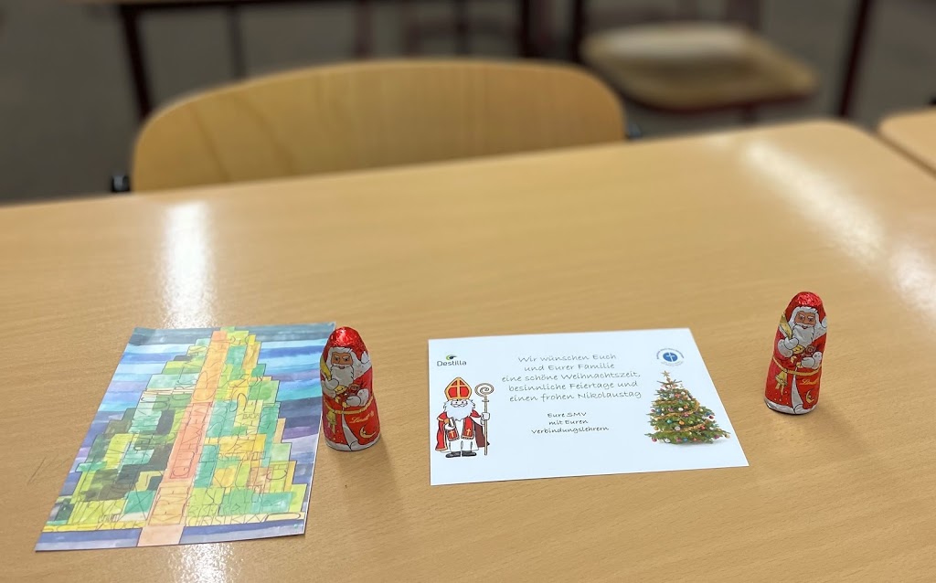 3.000,00 € konnten nun an die Seniorenwohnanlage St. Vinzenz überreicht werden, die von diesem Geld Kuscheldecken für die Bewohner anschaffen werden. Die restlichen Summe wird aufgrund der stark gestiegenen Kosten für die nächsten Schulfahrten, vor allem für die Romfahrt der gesamten Schule im Jahr 2027, verwendet werden.